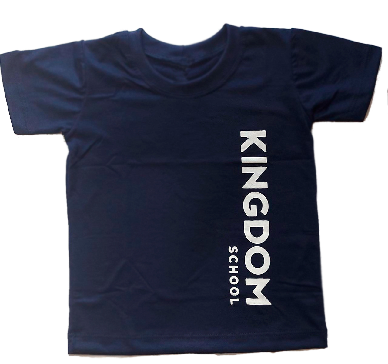Camisetas malha fria na cor azul, manga curta, com serigrafia lateral.